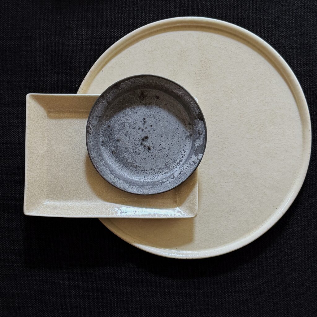 使い込まれた木の天板に置かれたとき、 うつわは空間の時間と響き合い、まるで以前からそこにあったかのような自然さを帯びます。